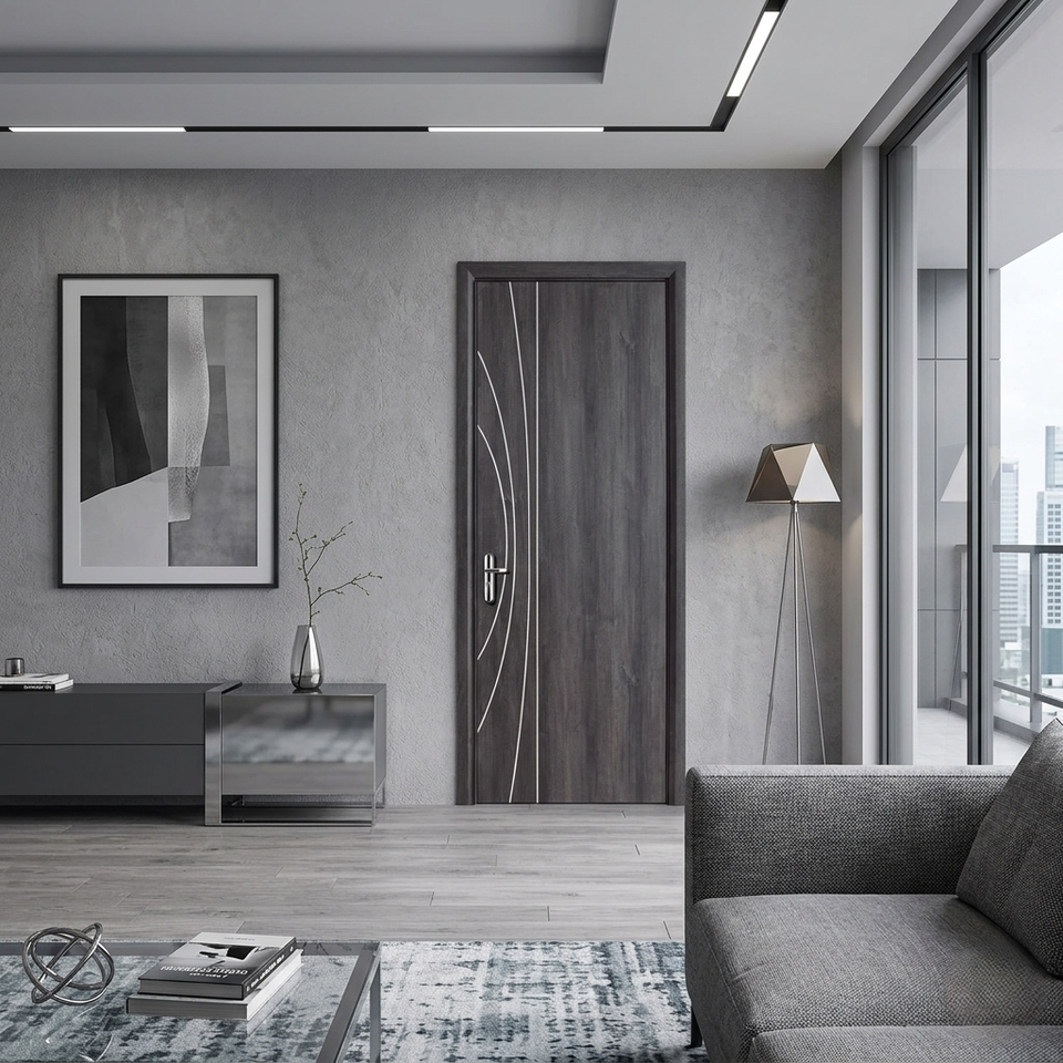 Usine ODM/OEM – Portes intérieures en MDF au design moderne, résistantes à l'humidité et aux moisissures, finition bois massif, pour bureaux et appartements