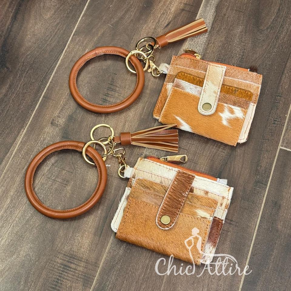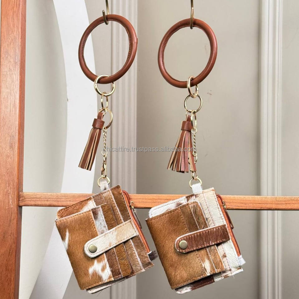 ODM/OEM Fashionable Custom Design Real Cowhide Leather Credit Card Holder Zipper Closer With Round Wristlet Keychain Coin Purse