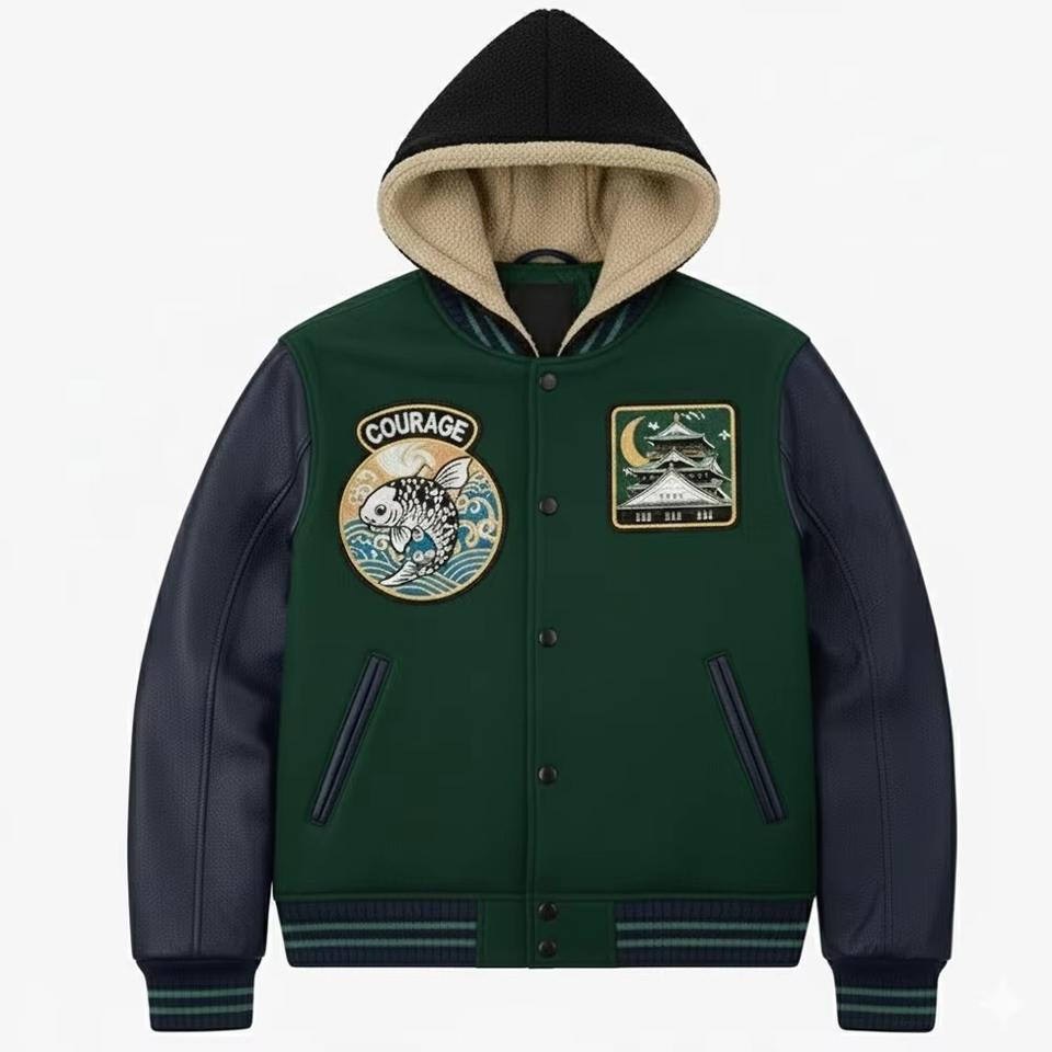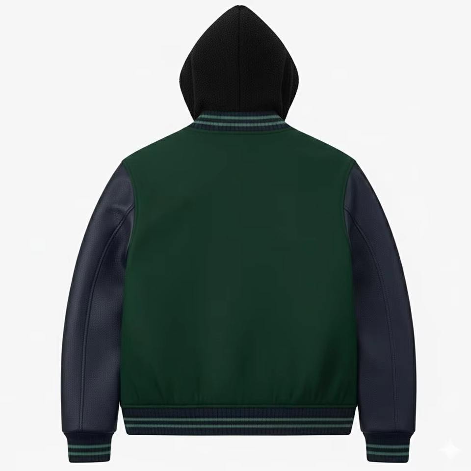 ODM OEM Vestes universitaires à capuche pour hommes de haute qualité personnalisées, chaudes pour l'hiver, couleurs personnalisées, nouveau design, veste universitaire de baseball pour homme