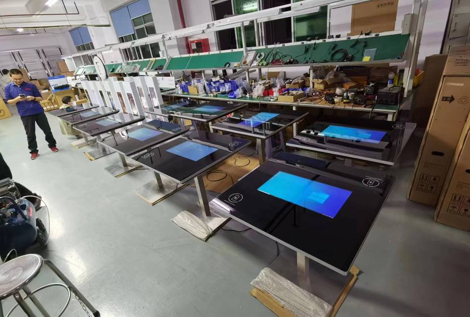 Écran publicitaire interactif LCD ODM OEM, table à écran tactile numérique avec recharge sans fil pour téléphone