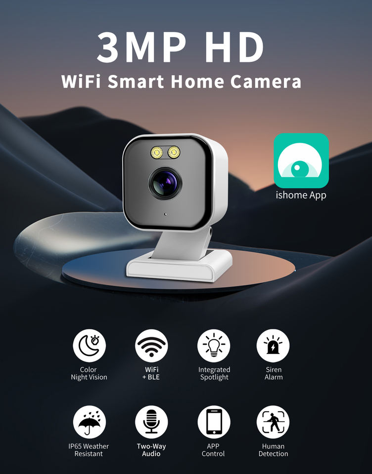 Caméra de sécurité domestique sans fil IP WIFI PTZ 3MP avec application Ishome, ODM OEM, avec certifications CE et ROHS