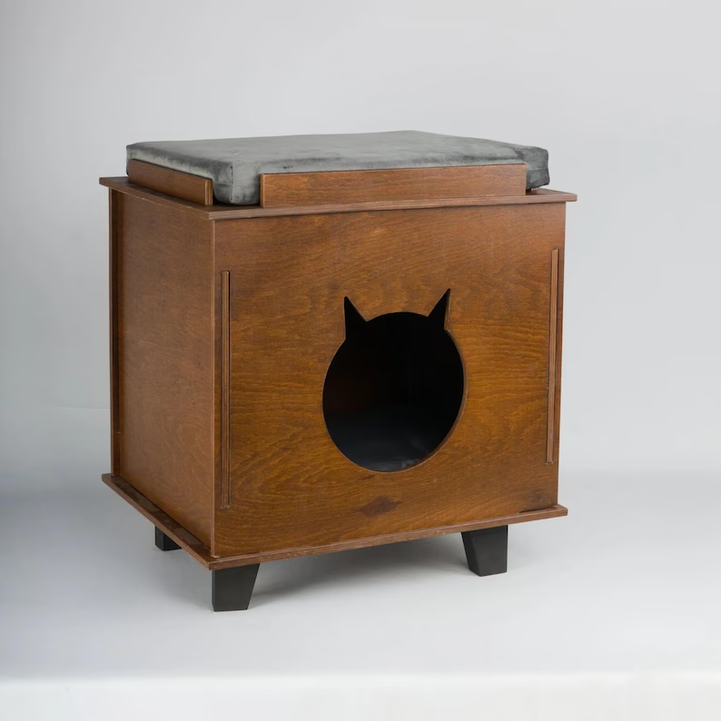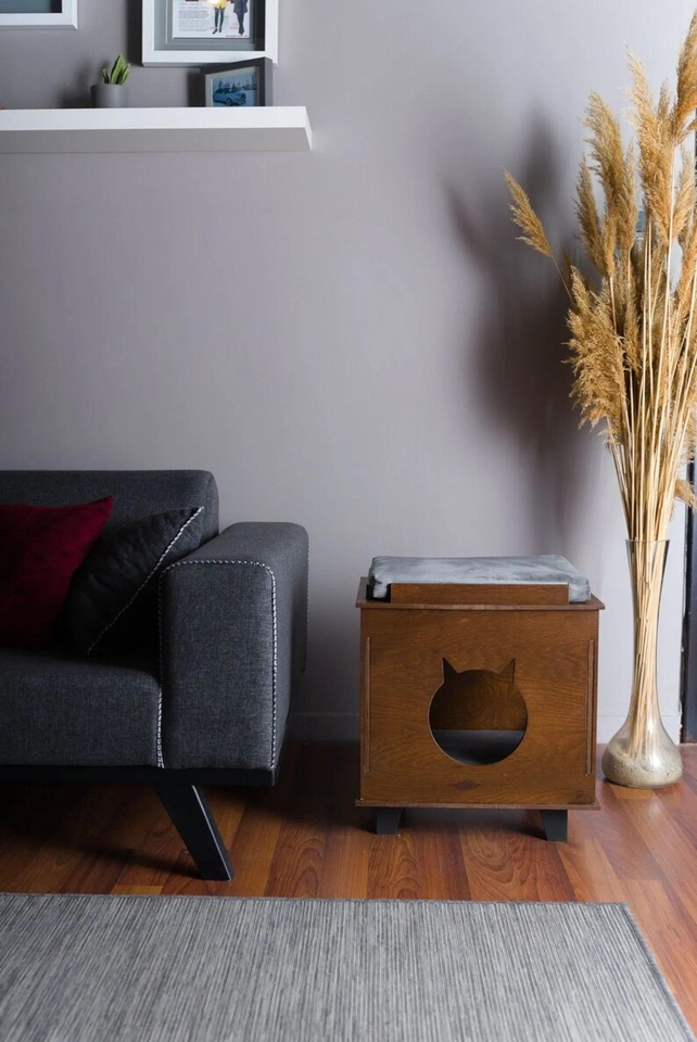 ODM OEM Maison pour chat moderne et minimaliste Premium Indoor Mid Century Élégant Lit pour animaux de compagnie Meubles Dark Sleeping Cave