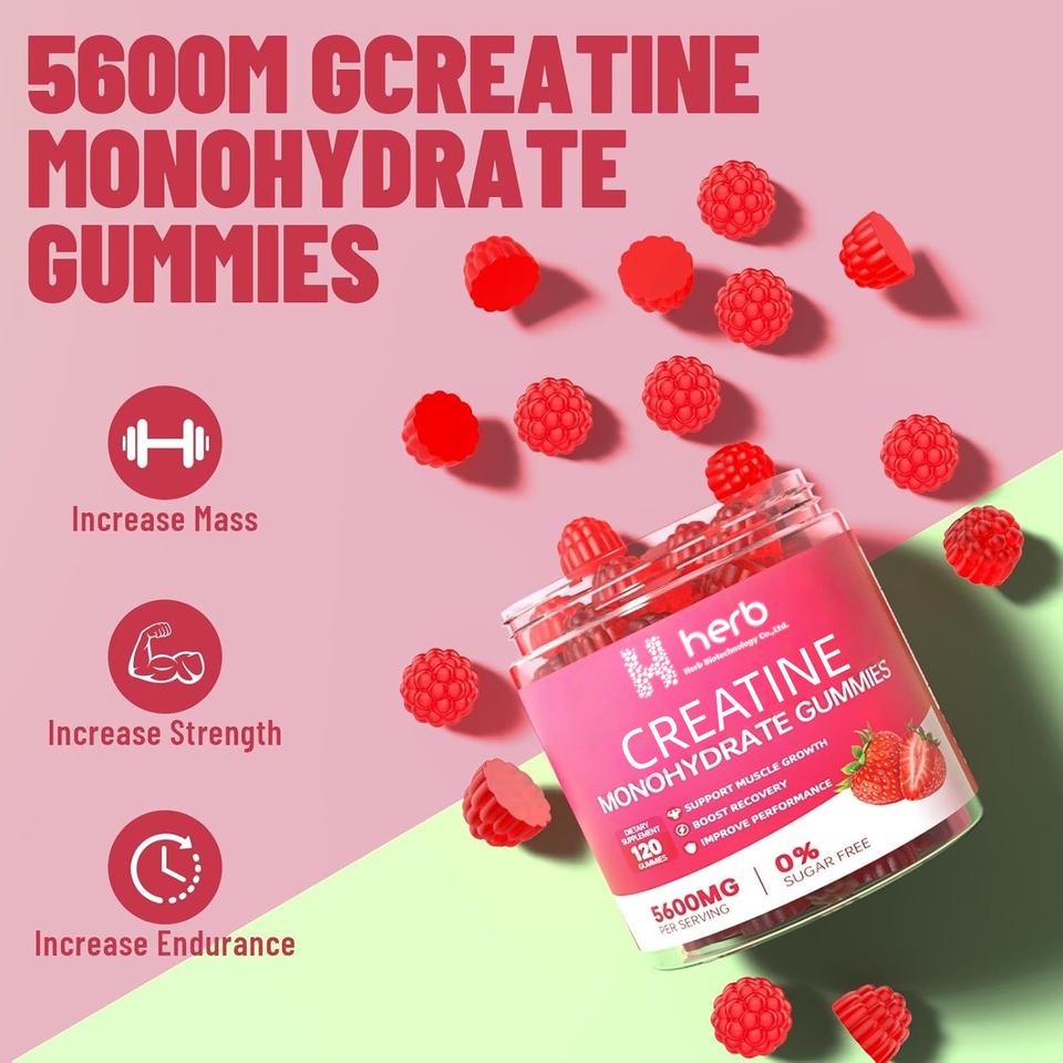 Complément alimentaire sportif en forme de bonbons gélifiés à la créatine monohydrate pour adultes, marque privée ODM/OEM, pour la gestion de l'énergie