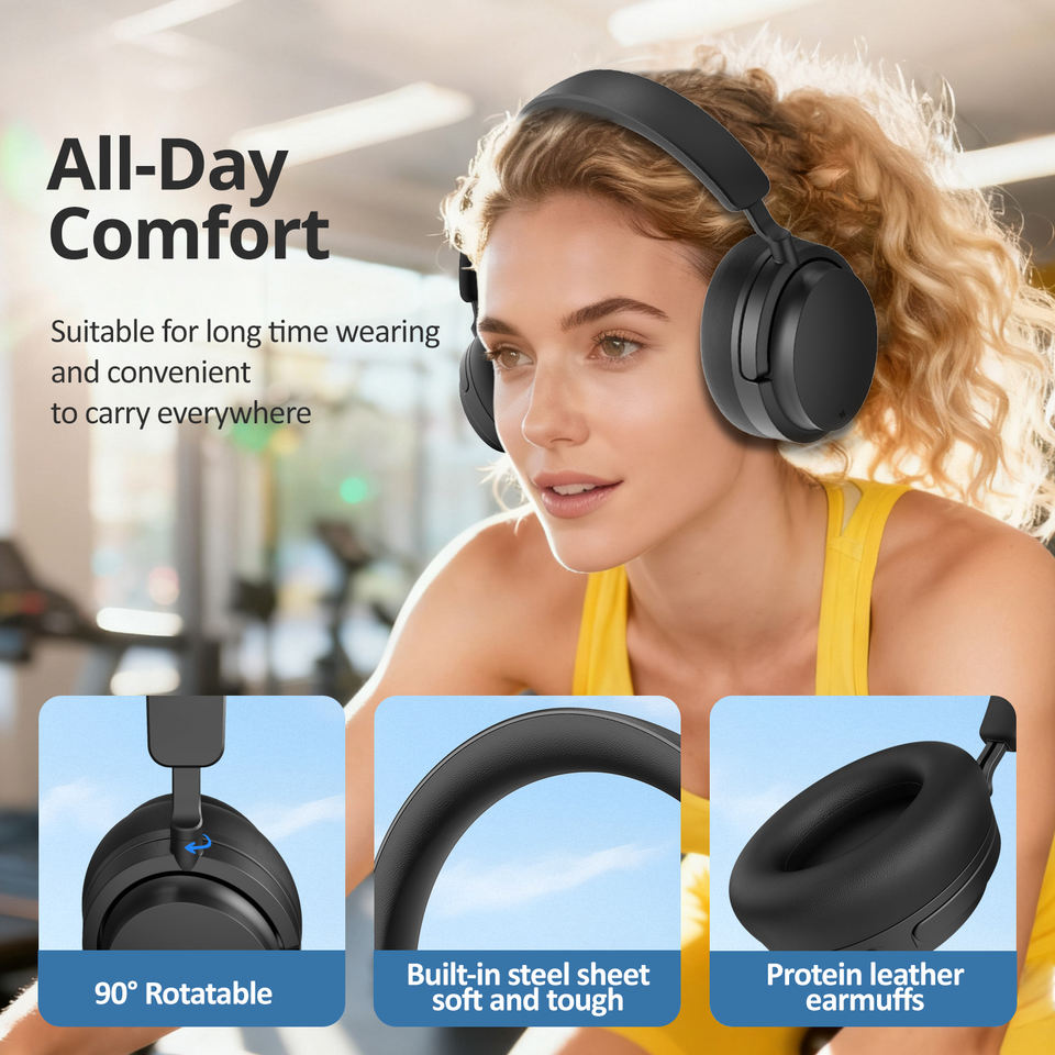 Casque circum-auriculaire ANC ODM Qualcomm 5.4 en métal, autonomie 125H, étanche IPX5, faible latence Apt-X HD pour le sport et le gaming