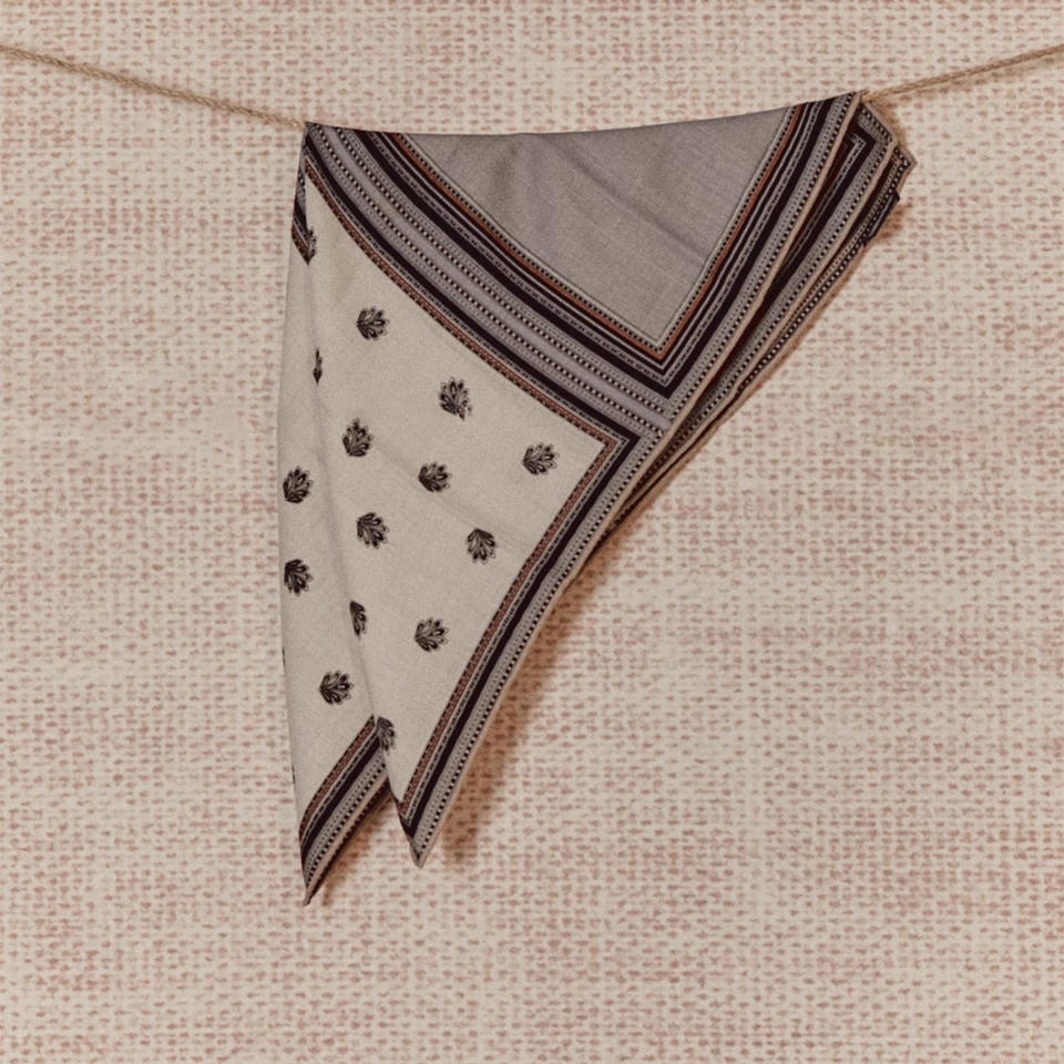Écharpe ODM avec des éléments géométriques naturels et une palette de couleurs Morandi à faible saturation, écharpes imprimées à la main sur un écran