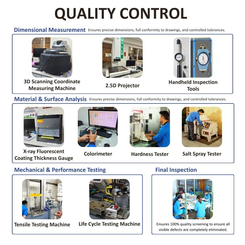 Tests de qualité complets:Essais de traction, de brouillard salin, de cycle de vie et de dureté