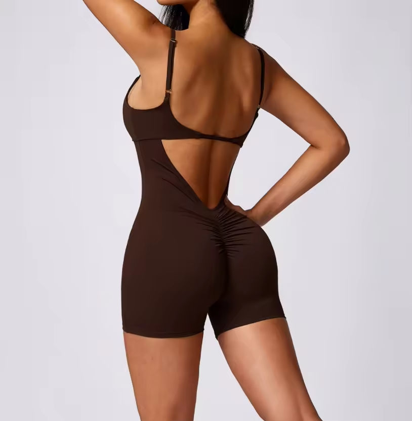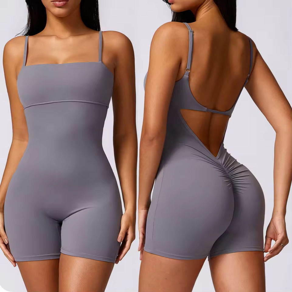 ODM combinaison de yoga une pièce de couleur unie pour femmes avec dos en forme de V
