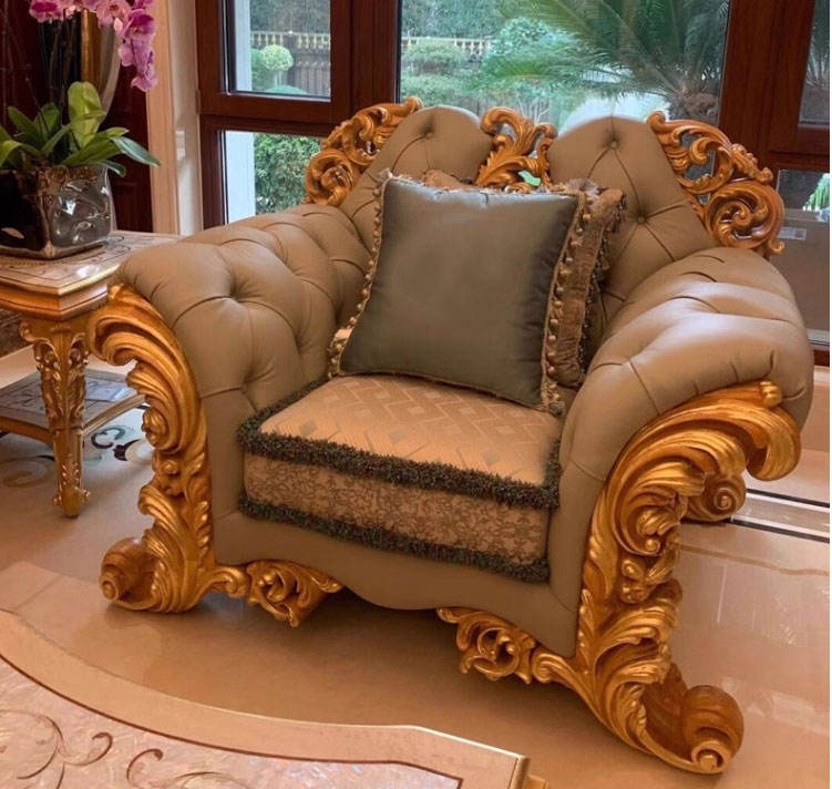 OE-FASHION canapé de luxe en bois massif sculpté à la main avec artisanat à la feuille d'or et ensemble de table basse en incrustation de coquillages