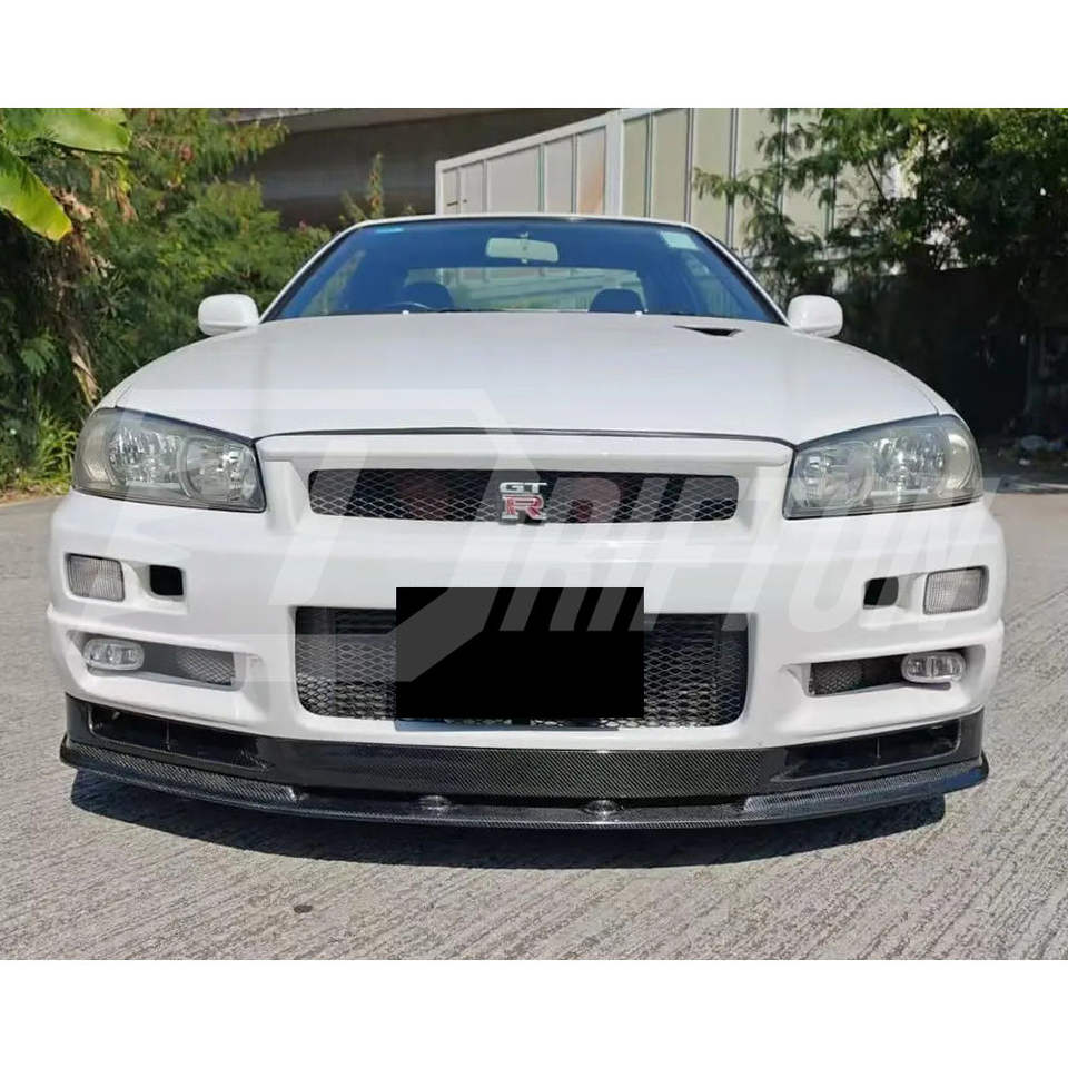 Nouvelle lèvre avant en fibre de carbone de style OE, à fixer par boulons, avec protection UV pour Skyline R34 GTR 1998-2002