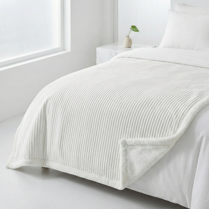 Nom du produit:Couverture en flanelle côtelée jacquard 3D rayée, doublée en velours Shu.