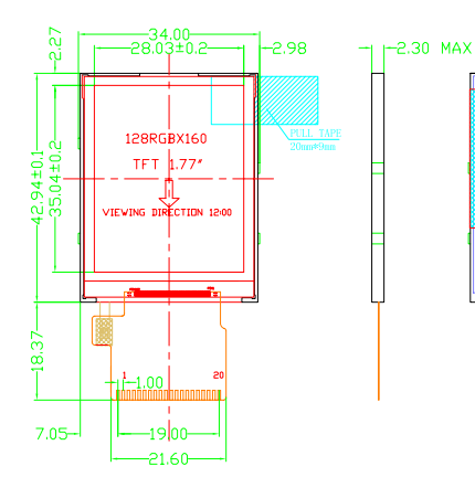 Écran LCD TFT avec interface MCU, résolution 128x160, 1,77 pouce, OEM, avec ST7735