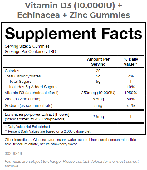 Product Name:Vitamin D3 (10000 IU) + Echinacea + Zinc Gummies