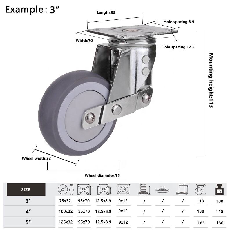 Diamètre de la roue:3 pouces/4 pouces/5 pouces