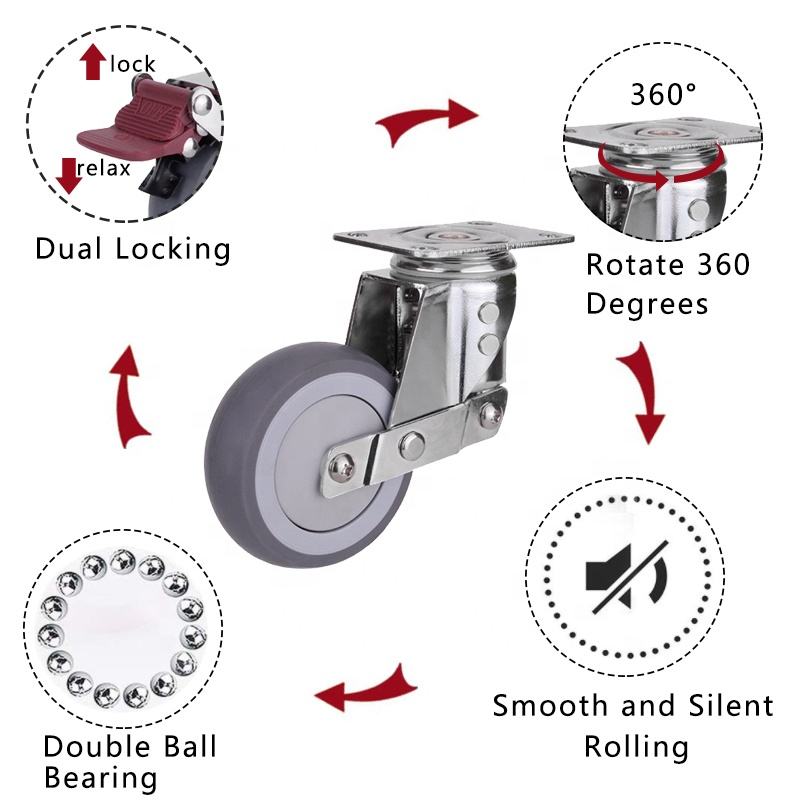 OEM 100mm 3 pouces 4 pouces 5 pouces en acier inoxydable roue à usage moyen avec roulette de verrouillage
