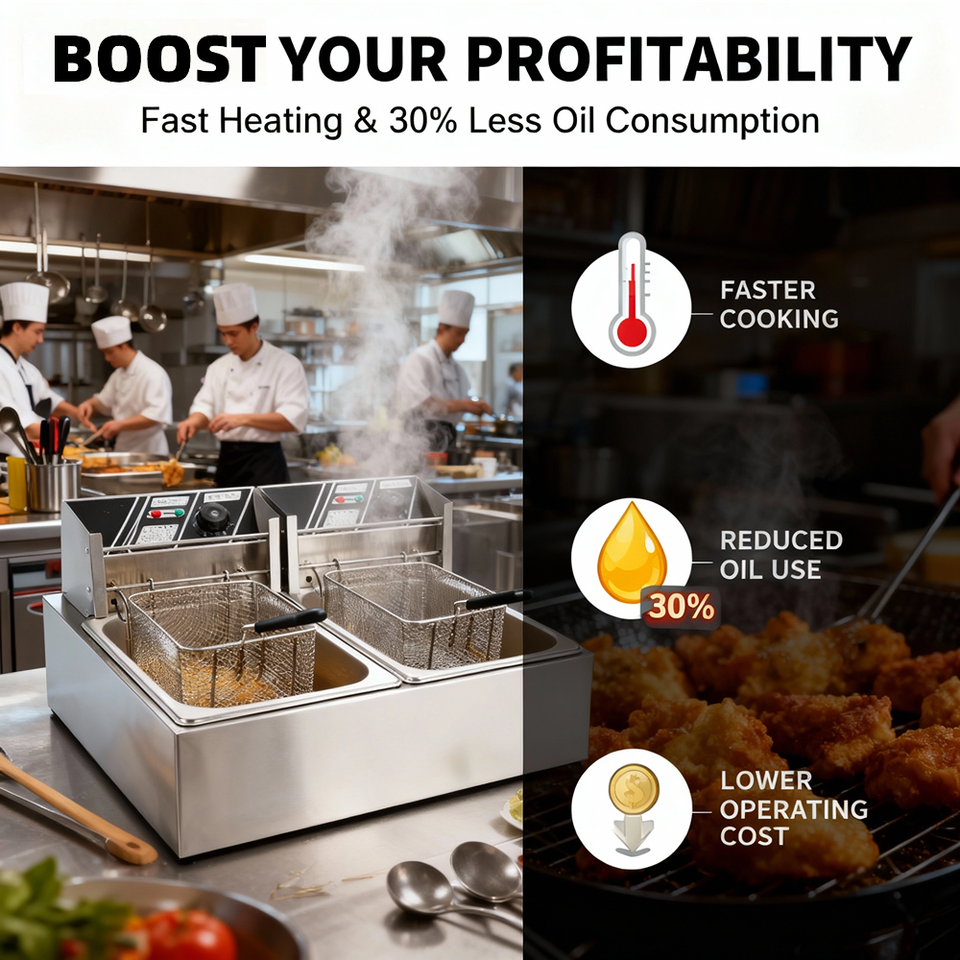 Friteuses électriques industrielles et commerciales OEM 12L à double cuve, pour frites de pommes de terre et poulet, avec fonction de réduction de la graisse