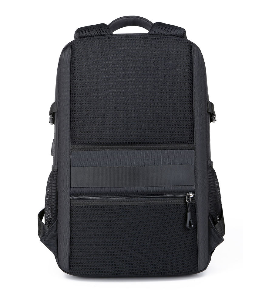 Sac à dos pour ordinateur portable OEM 15,6 pouces noir, en nylon imperméable, multi-poches, sac à dos de jour, faible MOQ, logo client, sac à dos antivol avec USB
