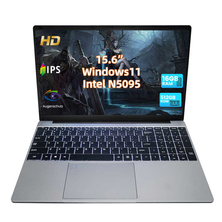 Ordinateur portable professionnel OEM 15,6 pouces avec écran IPS, processeur Intel Celeron N5095, 16 Go de RAM DDR4, 1 To de SSD, clavier anglais fin, prise US, Windows 10/11, neuf