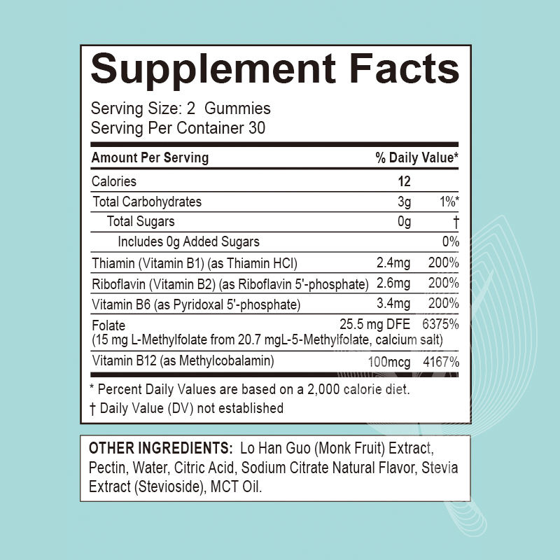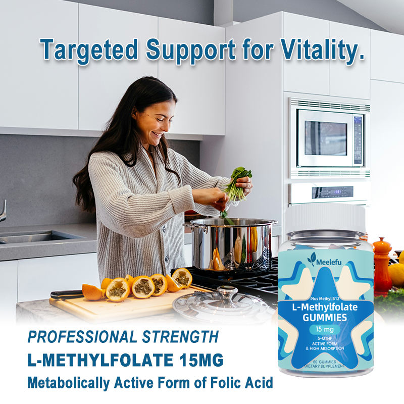 Gummies OEM 15mg L-Méthylfolate & Vitamines B (Méthyl B12 B1/B2/B6) - Saveur fruitée, 60 unités - Soutient le gène MTHFR et la cognition