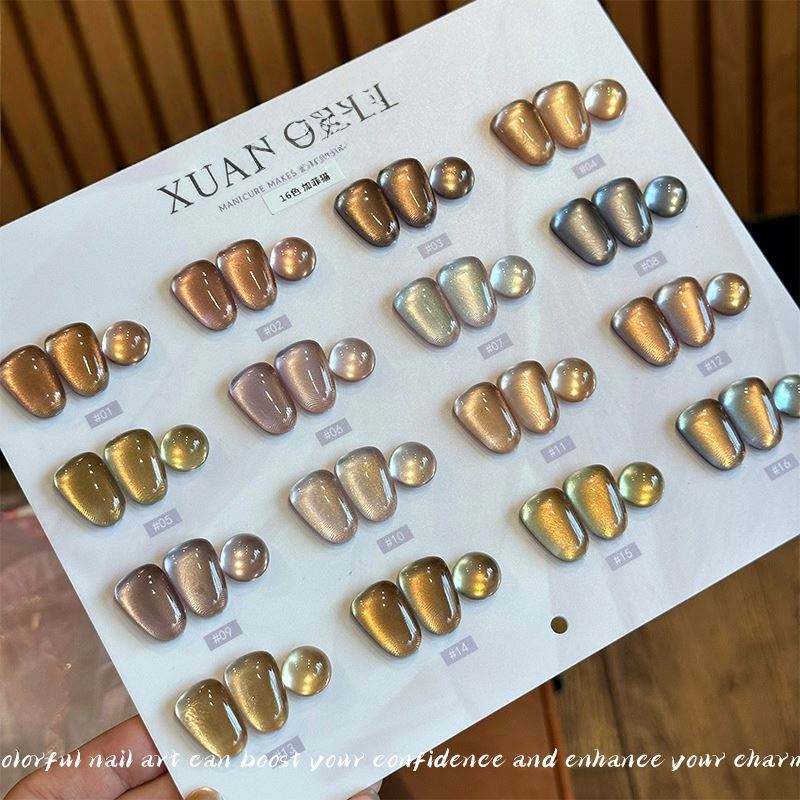 Kit de vernis à ongles en gel UV Garfield Cat 16 couleurs OEM avec perles de verre brun caramel, design œil de chat, vernis à ongles en gel magnétique 15 ml