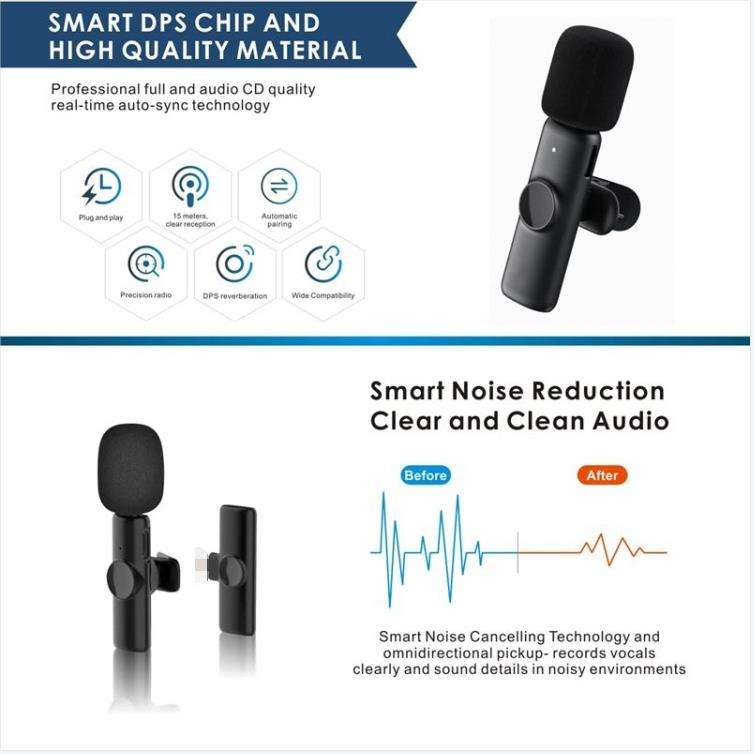 OEM 2 en 1 Microphone sans fil Lavalier Réduction du bruit Enregistrement Portable Mini Microphone pour iPhone / iPad Android