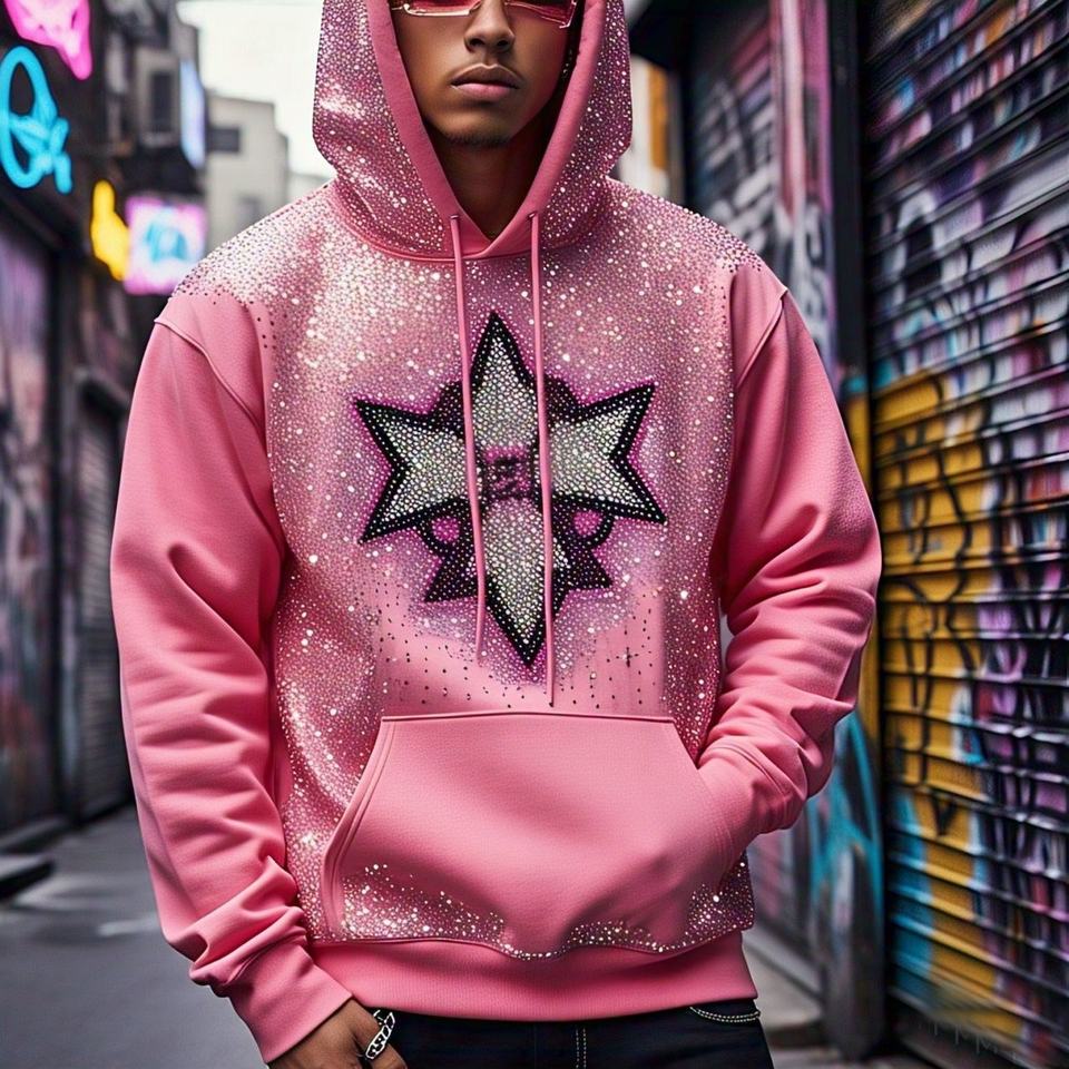 OEM 2025, sweat à capuche pour homme 100% coton avec impression bouffante et strass style éponge française