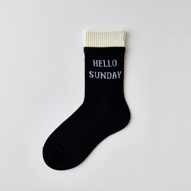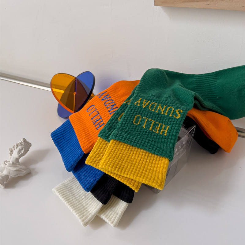 Chaussettes en vrac OEM 2026 Hello Sunday Crew Patchwork en coton pour le printemps et l'été, idéales pour le sport et le fitness, style classique rétro unisexe