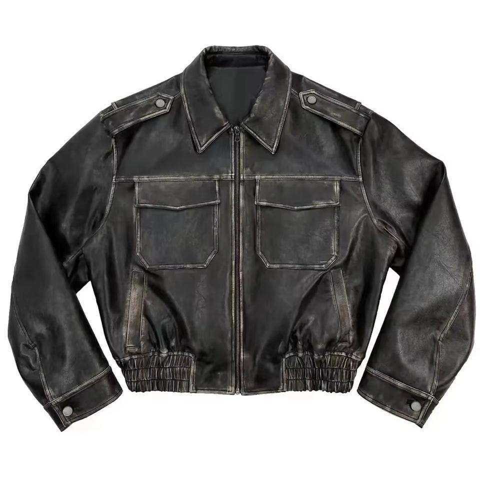 Blousons en cuir lavé personnalisés OEM 2026 pour hommes – Blousons de moto coupe-vent en cuir PU de haute qualité pour hommes