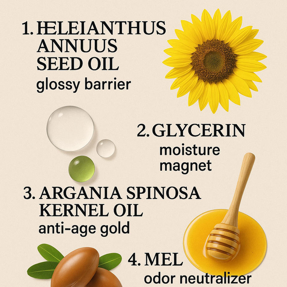 HELIANTHUS ANNUUS SEED OIL, Glycerin, ARGANIA SPINOSA KERNEL OIL, honeymain ingredient