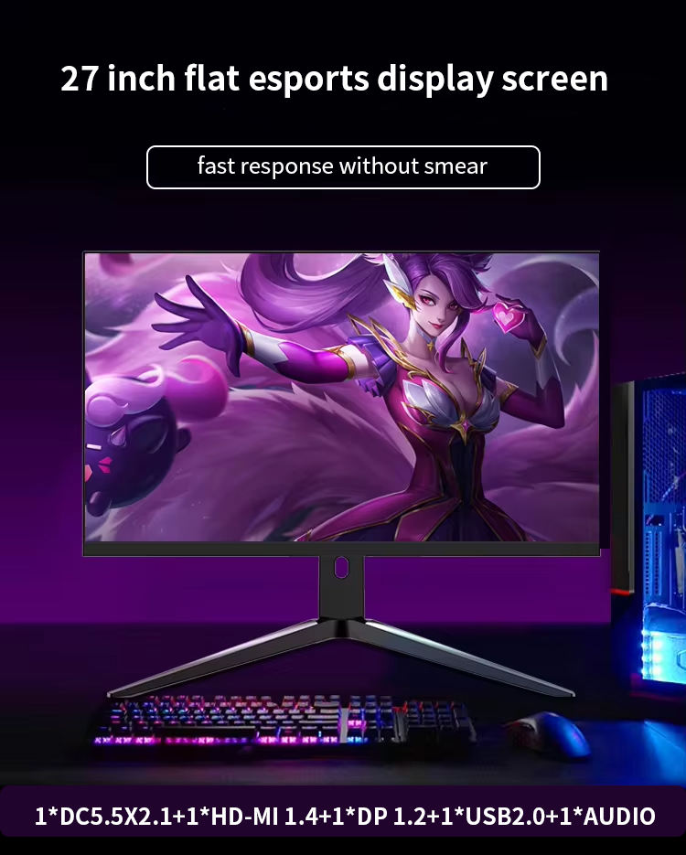 Moniteur d'ordinateur LED rotatif OEM 27'' QHD 2K 1440P 165Hz pour jeux avec éclairage LED
