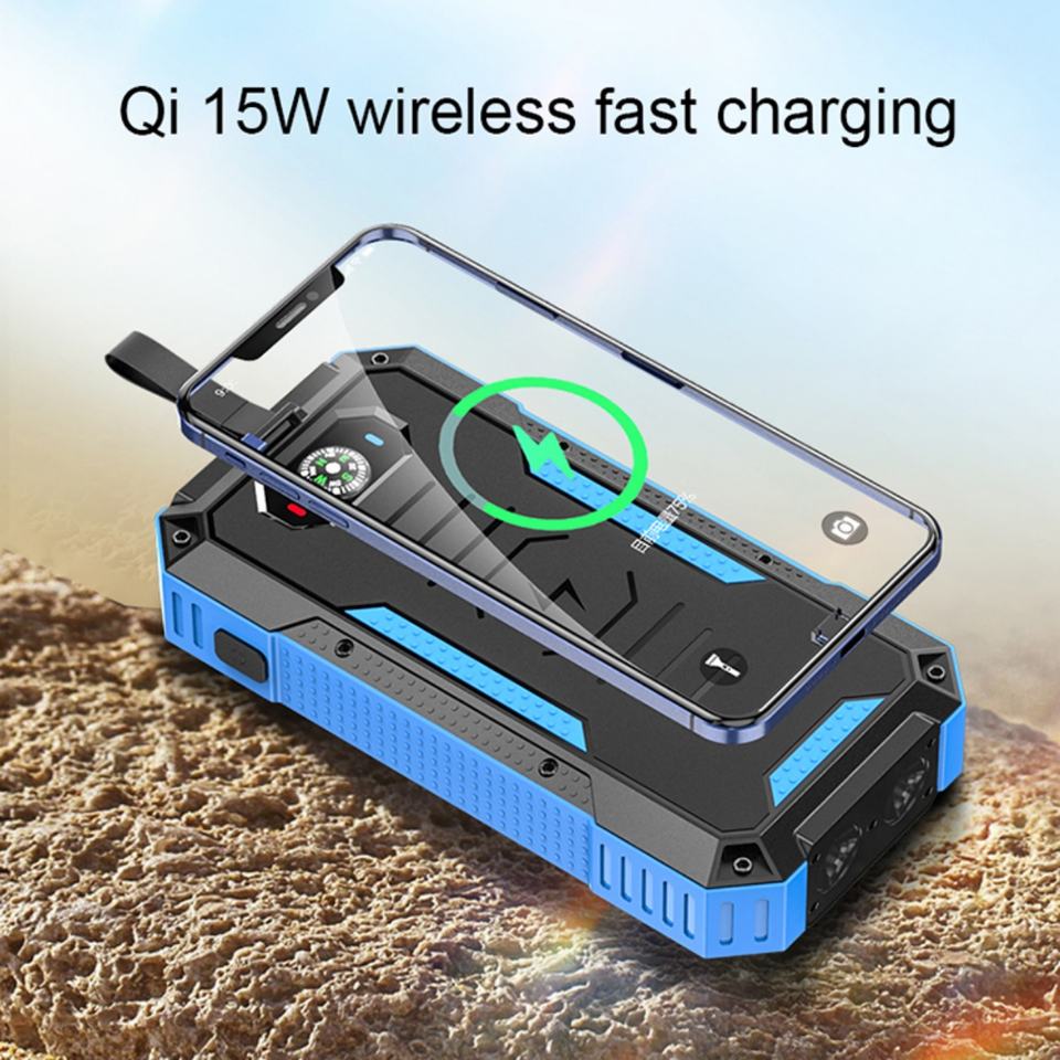 Batterie externe solaire étanche sans fil de 30000 mAh