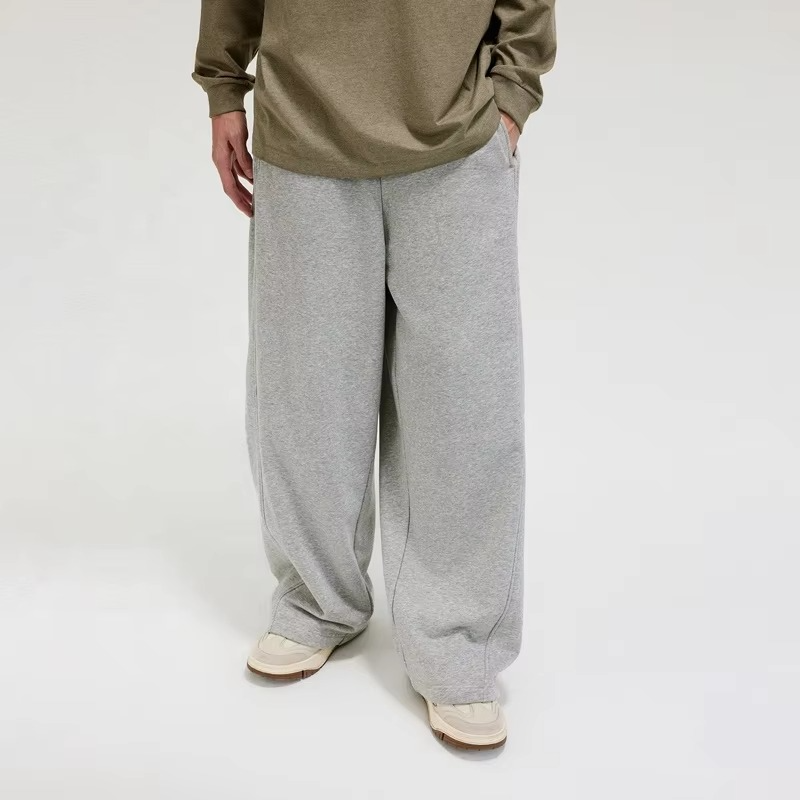 Pantalons de survêtement surdimensionnés personnalisés OEM 450 g/m², ourlet brut, taille élastique, pantalon de jogging décontracté, pantalon de survêtement lourd de couleur unie