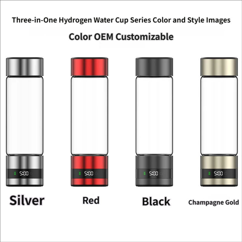 Bouteille d'eau hydrogénée intelligente en verre OEM 460 ml avec support, alimentée par USB, pour usage domestique, extérieur et automobile