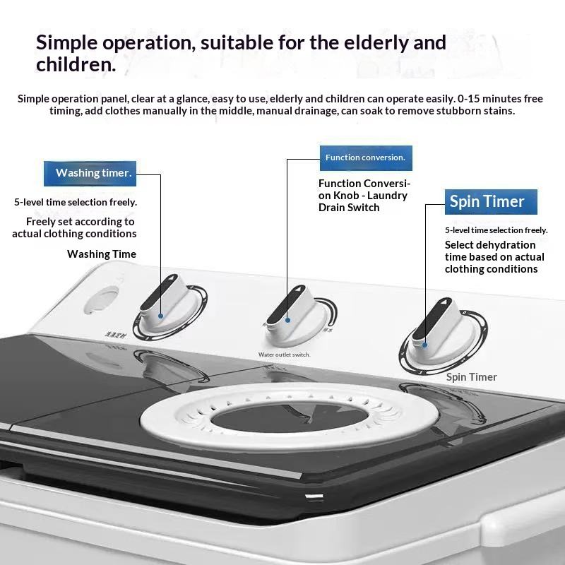 Laveuse-sécheuse semi-automatique à chargement par le haut OEM 5,5 kg avec double cuve, nettoyage à la lumière noire et sécheuse à double moteur pour usage domestique