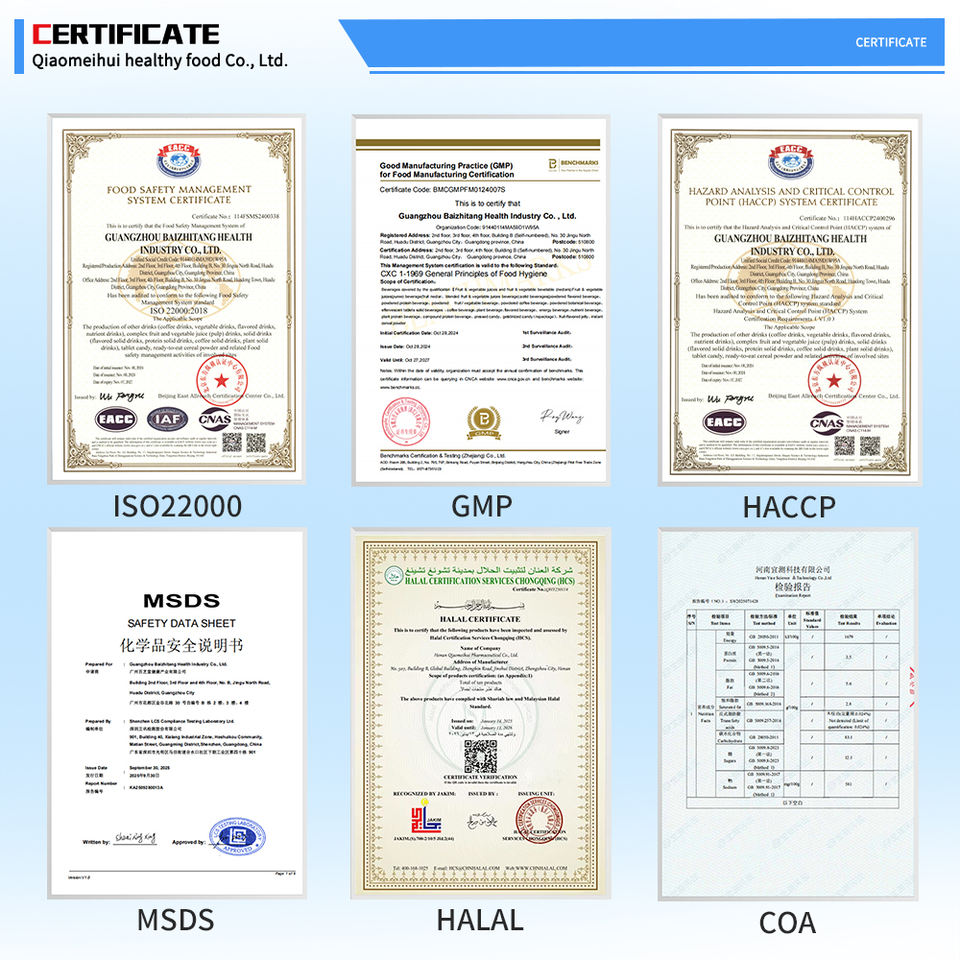 Certificate:ISO22000/HACCP/GMP/HALAL
