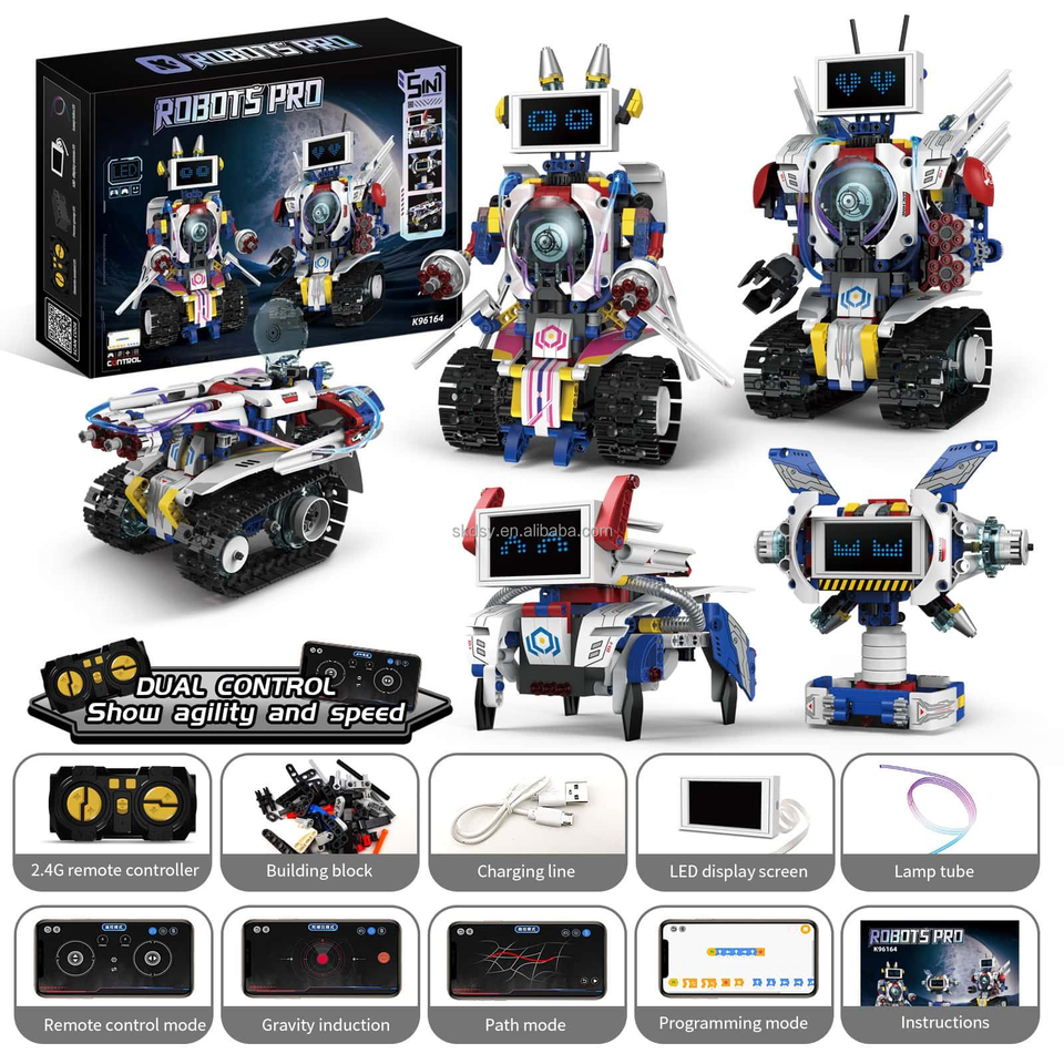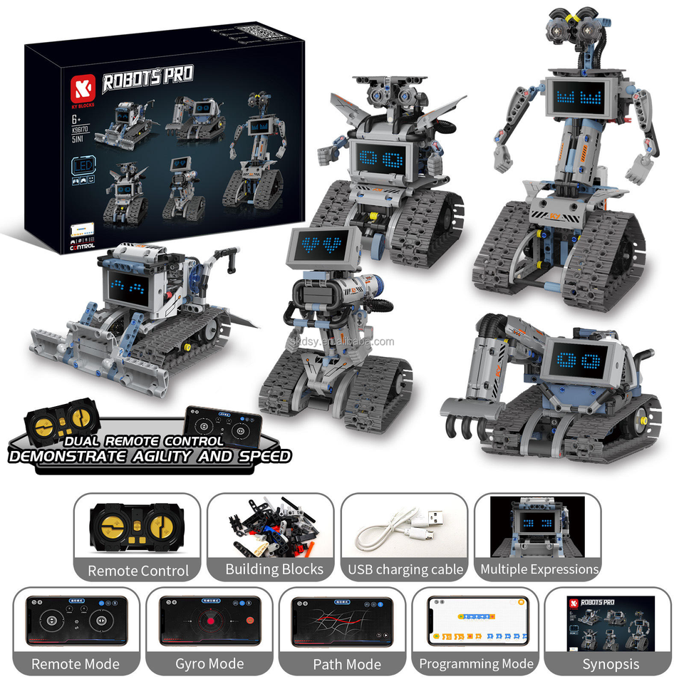 Ensemble de blocs de construction robotiques éducatifs STEM 6-en-1 en plastique ABS OEM, jouet robot à chenilles multi-modèles pour enfants