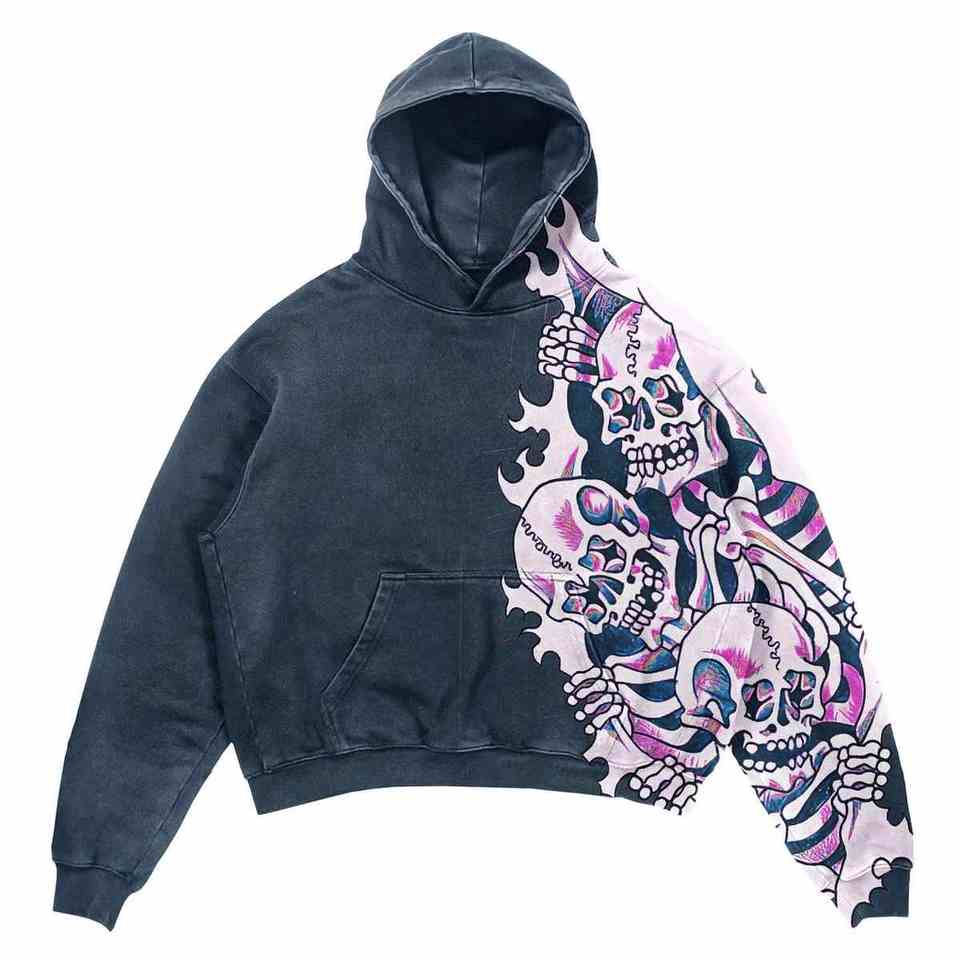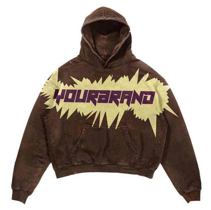 OEM Acid Washed Pulls à capuche pour hommes 500GSM 100% coton DTG Print Sweatshirts Streetwear Plus Size Blank Stone Washed Hoodie