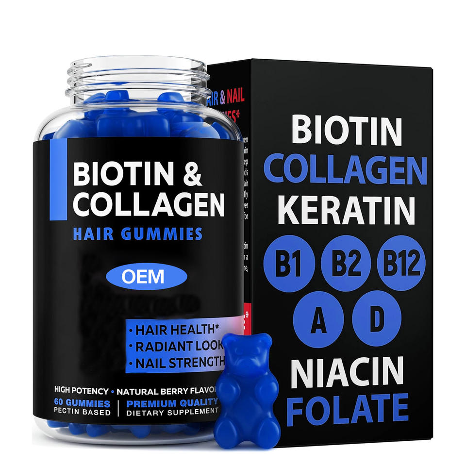 Gommes Multivitamines de Collagène et de Biotine pour Adultes OEM pour la Beauté de la Peau des Cheveux et la Peau Suppléments de Santé Éclaircissants