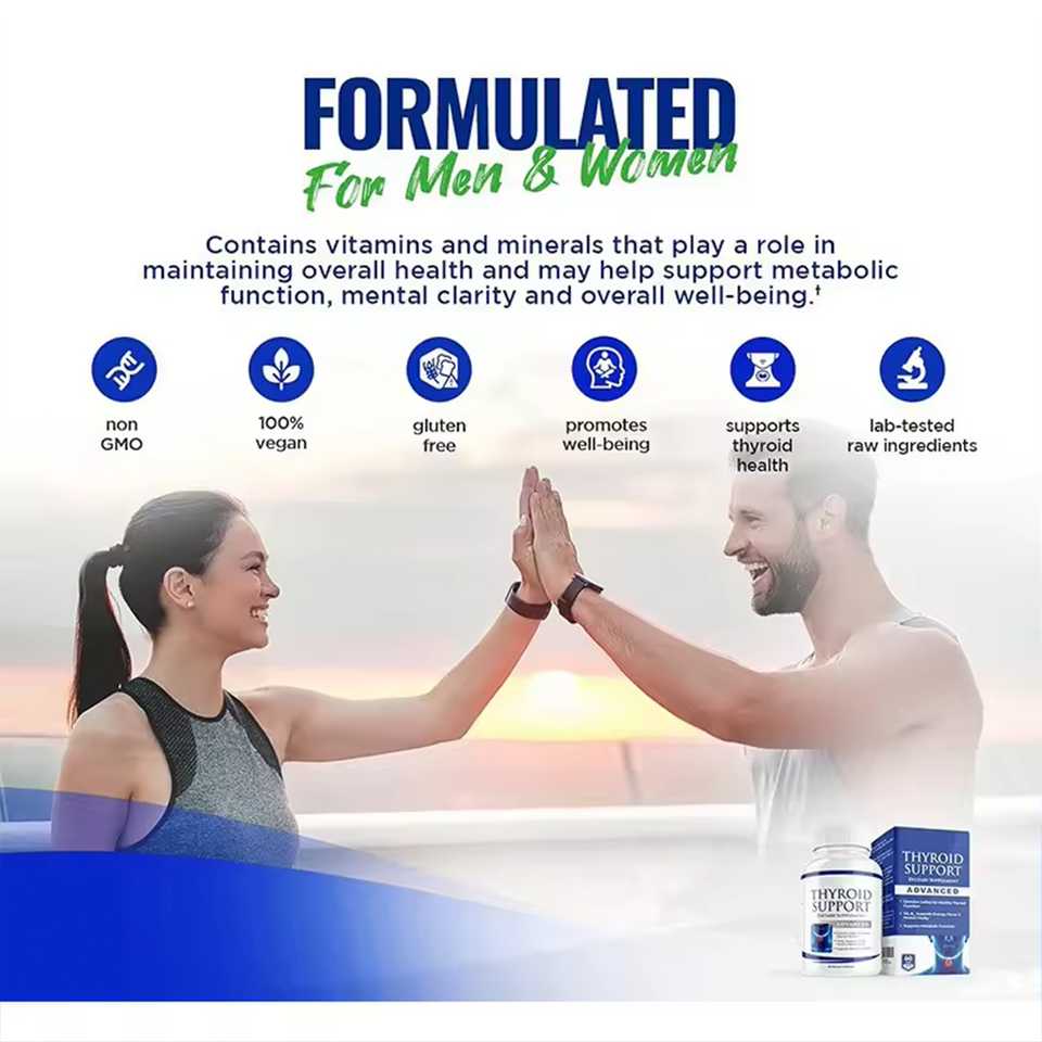Capsules de soutien de la thyroïde pour adultes OEM, 60 unités, soutien immunitaire avec Ashwagandha, à base de plantes naturelles, végétaliennes, en promotion