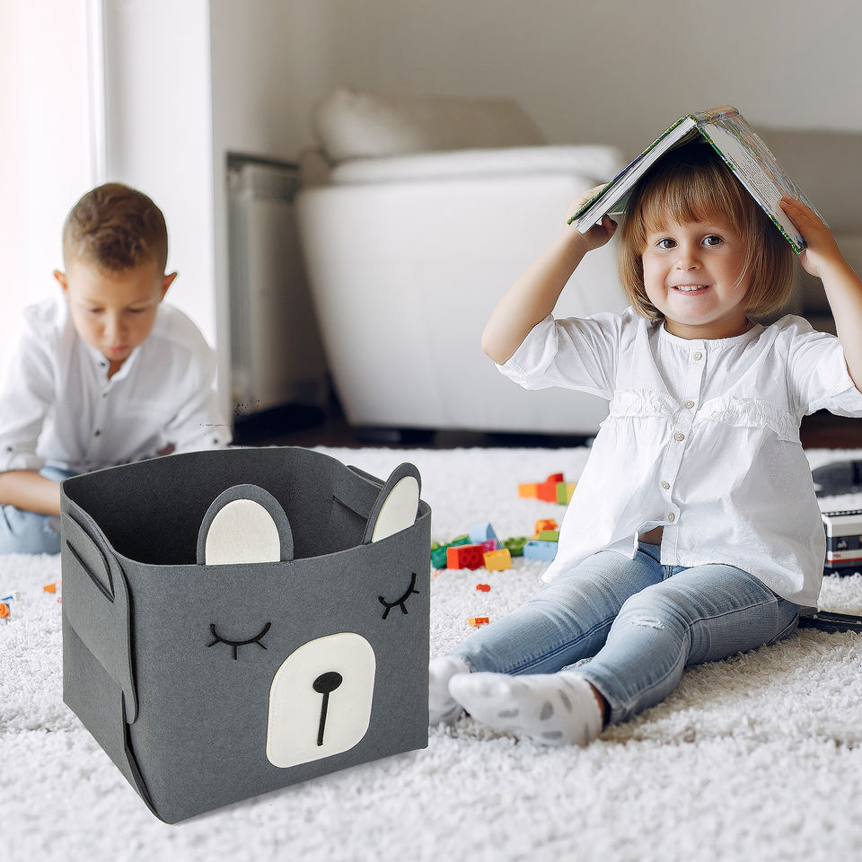 OEM Conception d'ours Organisateur de stockage de jouets pour enfants Paniers de stockage de jouets en feutre pour enfants Organisateur de vêtements secs