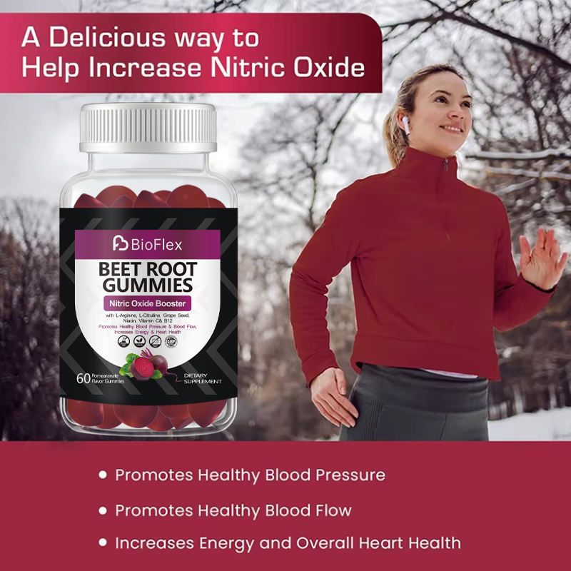 OEM Betterave Gummy Extra Strength Nitric Oxide Booster Supplément 1000mg Betterave Racine Extract Gummies avec Vitamine C et Magnésium