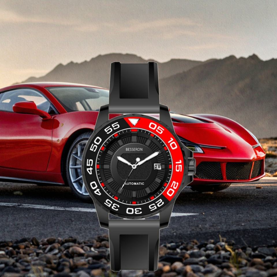 Montre de sport automatique pour homme de haute qualité avec boîtier en biocéramique OEM, lunette en acier inoxydable, mouvement 8215, étanche, analogique, verre, caoutchouc