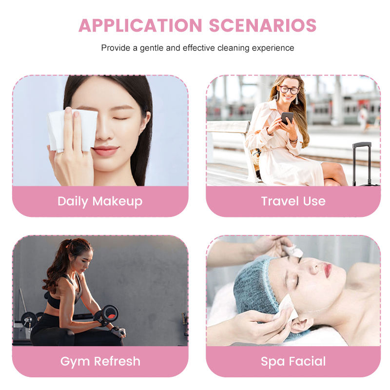Lingettes démaquillantes biodégradables OEM emballées individuellement pour le visage et les yeux Lingettes nettoyantes portables sans alcool