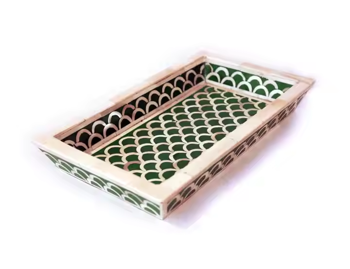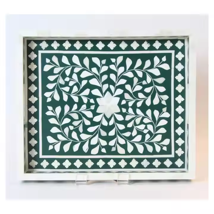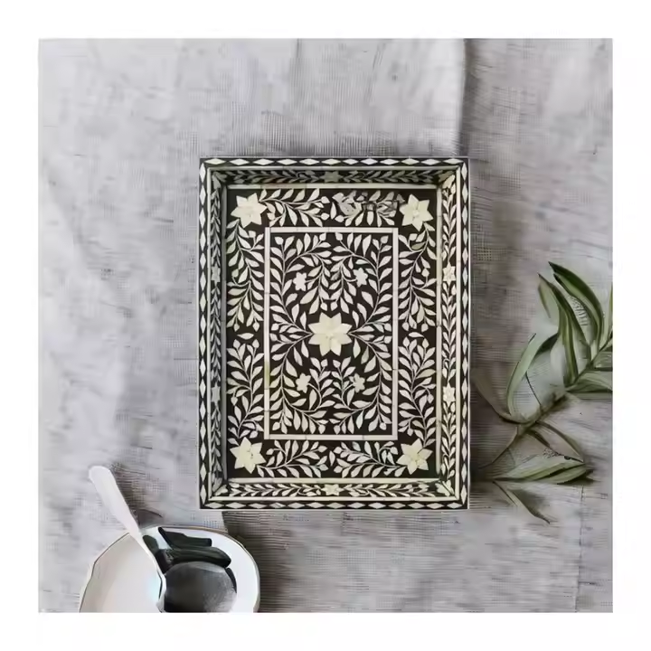 Plateau OEM avec incrustation d'os et poignée en métal Plateau de service en résine MDF pour la maison, la cuisine, l'hôtel, le stockage, l'organisateur décoratif et populaire
