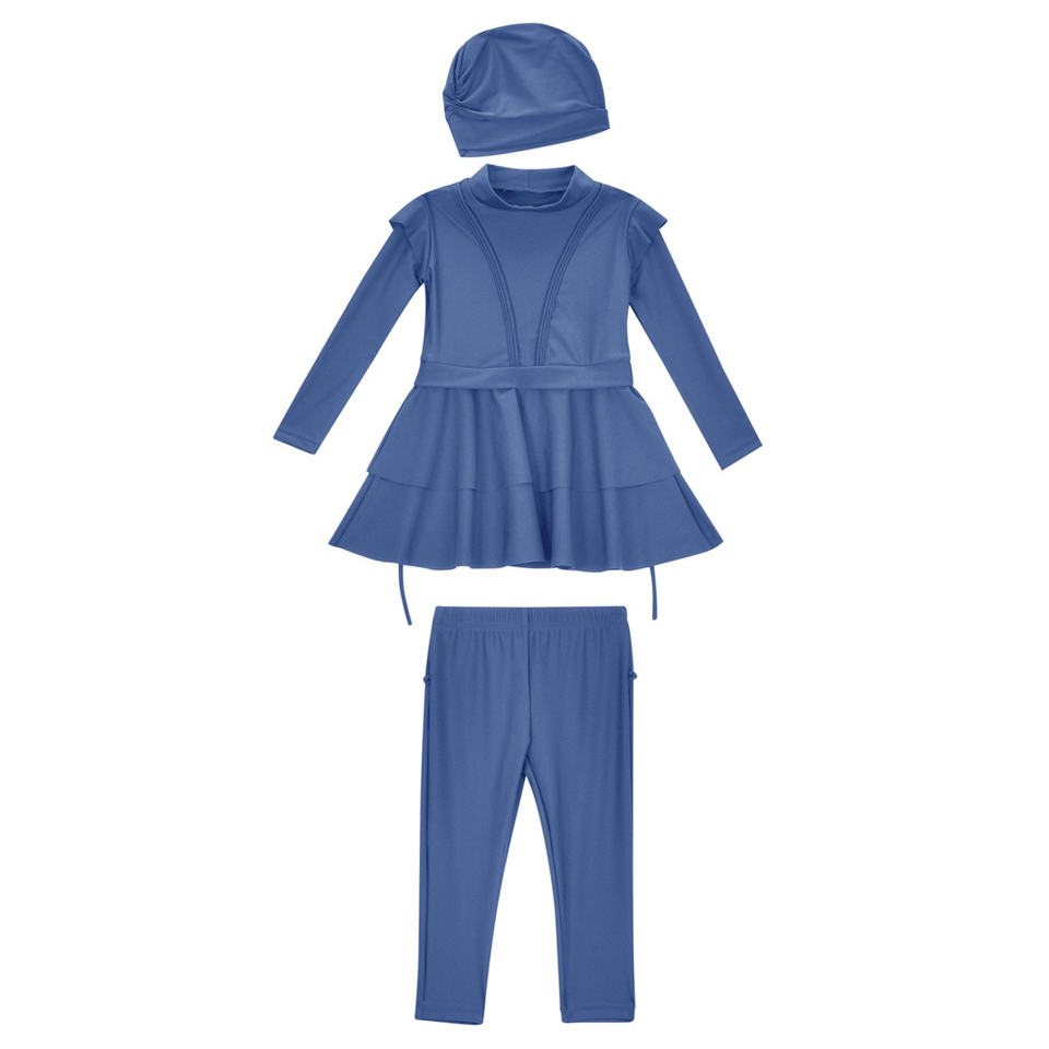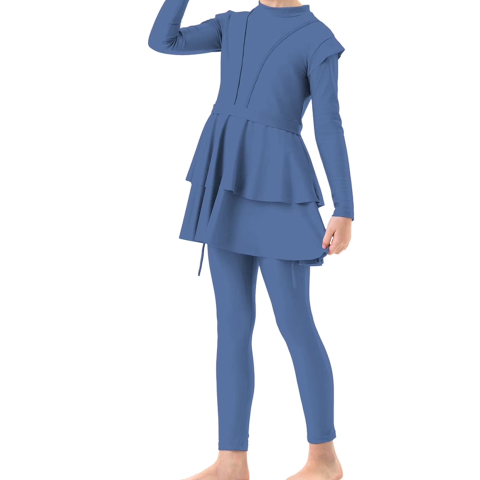OEM Branded Long Sleeve Islamic Kids Modest Hijab Beach Full Coverage 2 Piece Set Plus Size Print Swimsuit