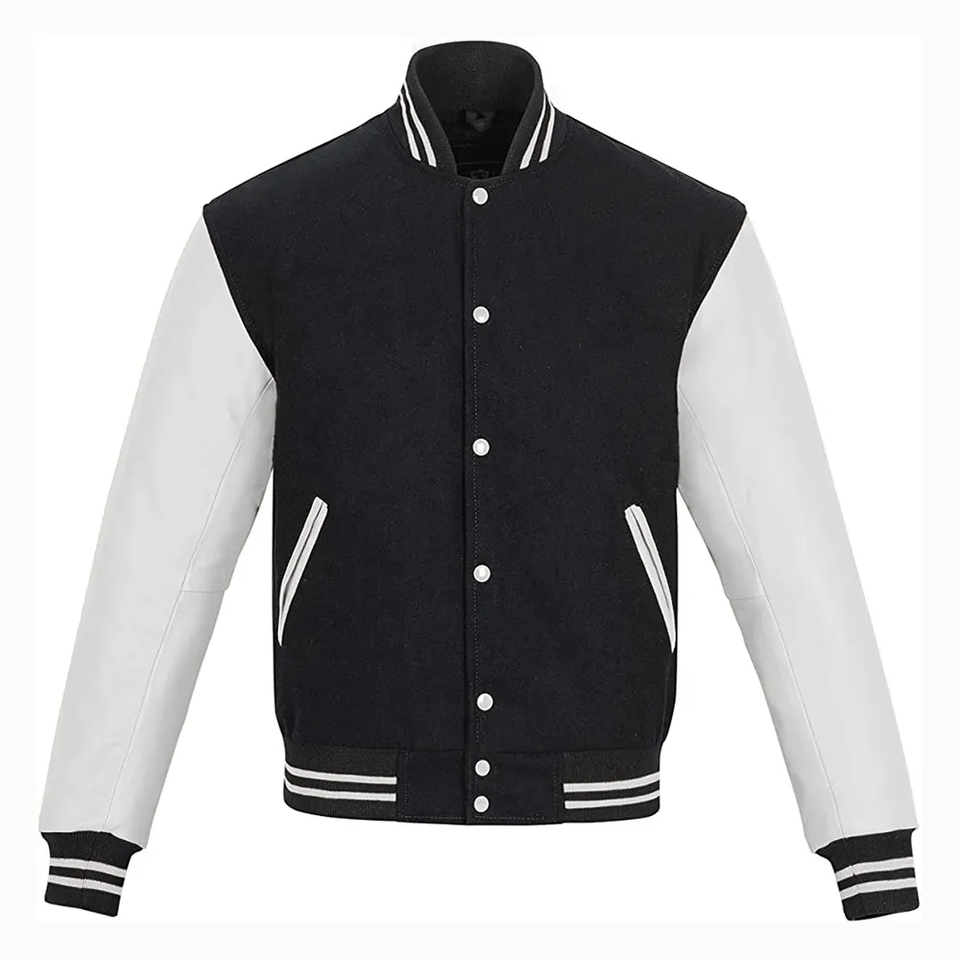Blouson universitaire respirant pour homme OEM avec broderie chenille, manches en cuir, col montant, motif lettres, personnalisable et tendance