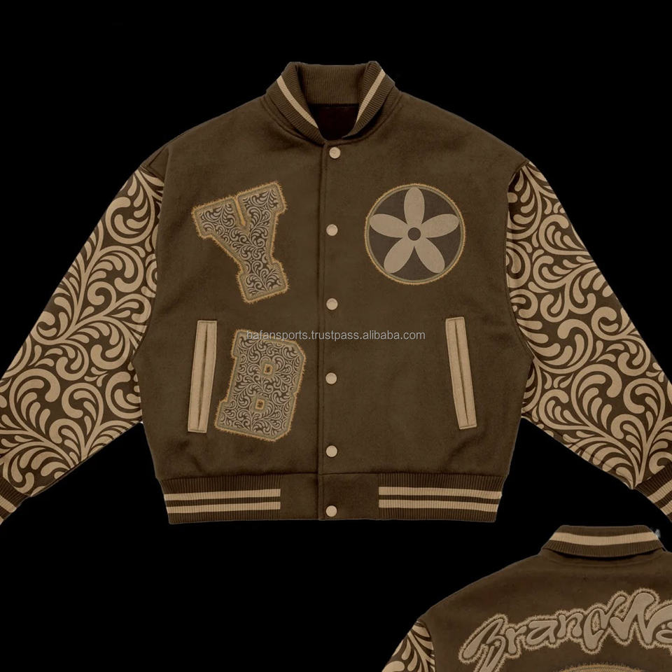 Veste universitaire respirante pour hommes OEM avec broderie en chenille et manches en cuir Veste universitaire américaine tendance personnalisée pour hommes