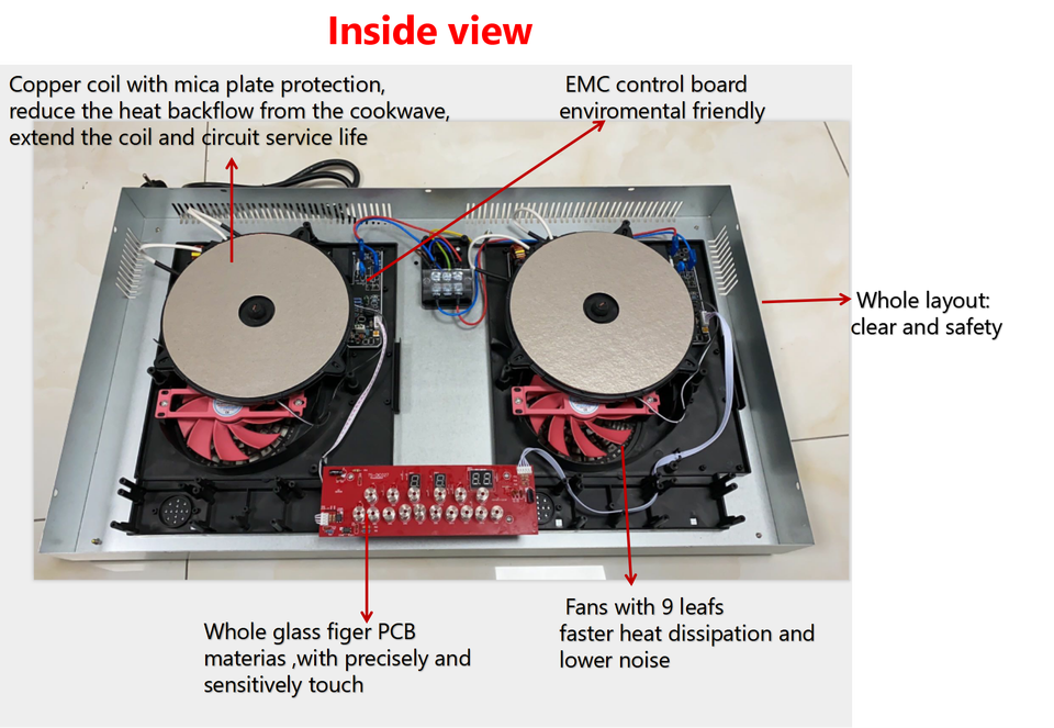 Double cuiseur à Induction à bord nage, cuiseur électrique avec verre en céramique intégré, OEM