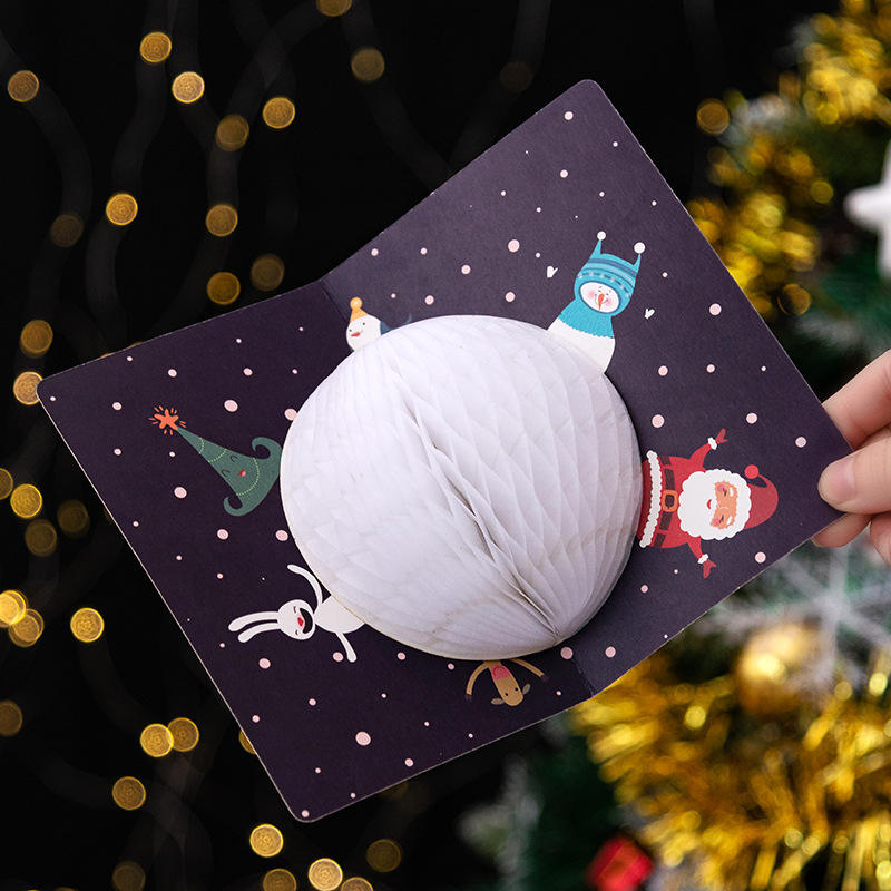 Carte d'arbre de Noël 3D en vrac OEM carte de voeux de Noël créative en nid d'abeille 3D avec autocollant et enveloppes
