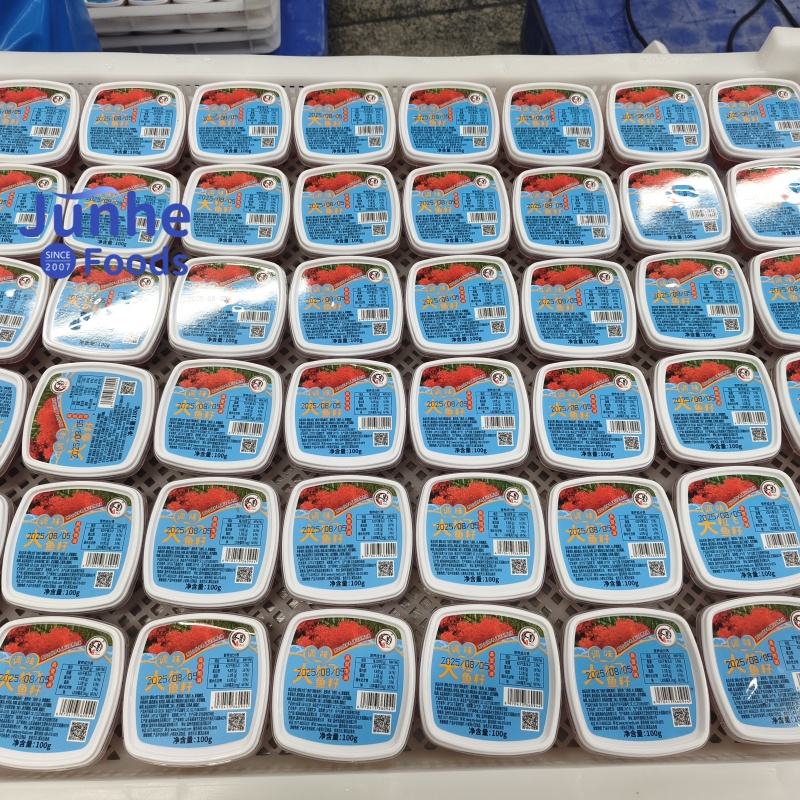 Emballage en vrac OEM prêt à manger Caviar de Tobikko noir congelé pour enfants Cuisine japonaise sucrée et épicée dans un emballage en boîte