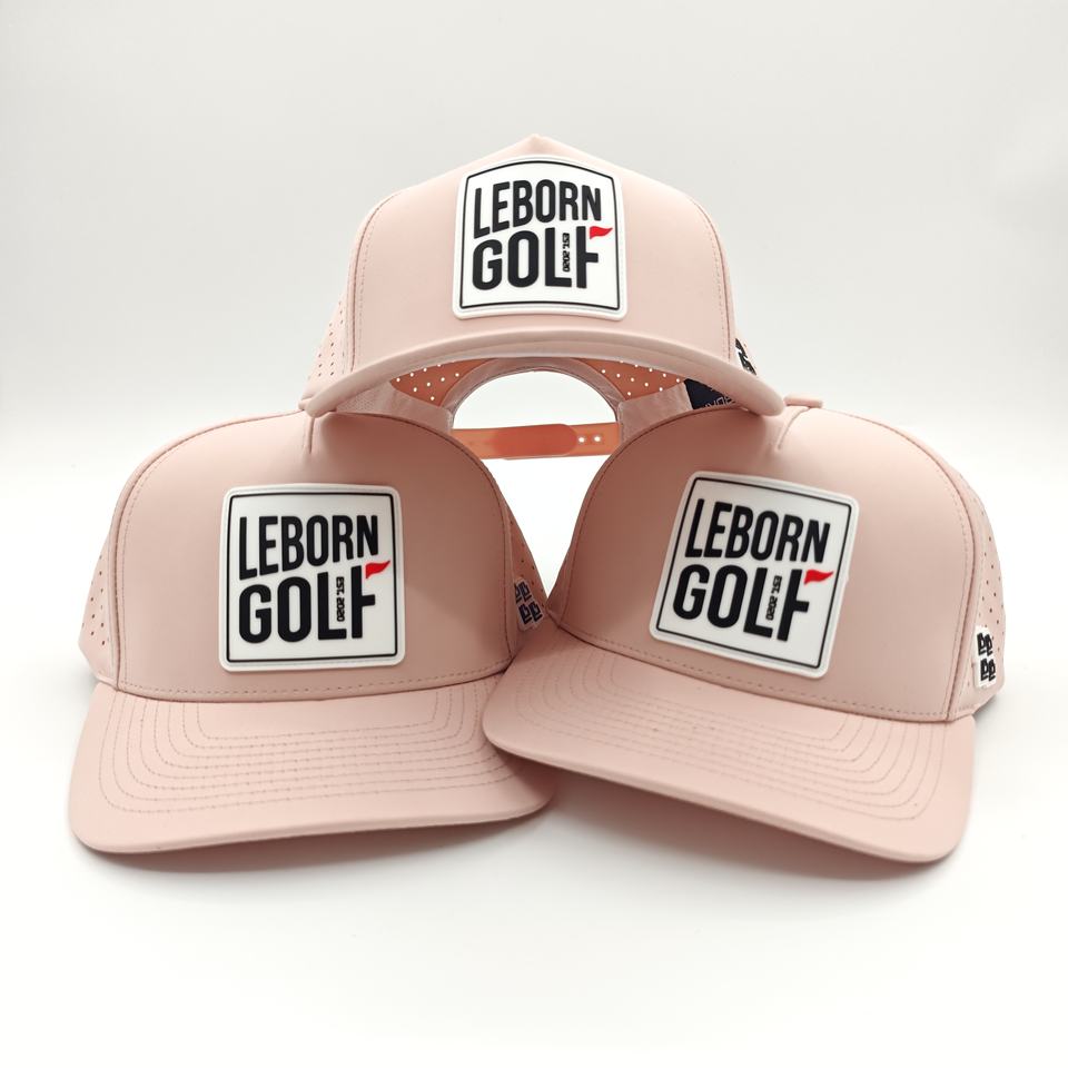 Casquettes de baseball OEM Business 5 panneaux en polyester, avec patch en caoutchouc design, découpe laser, perforations, imperméables, personnalisables et ajustables, motif léopard à pois Dobby